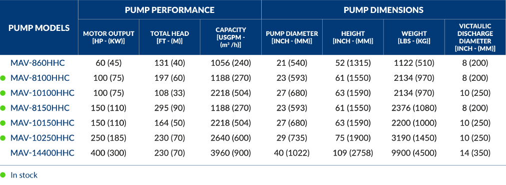 These models are designed to meet high-capacity and high-head requirements in specific applications.